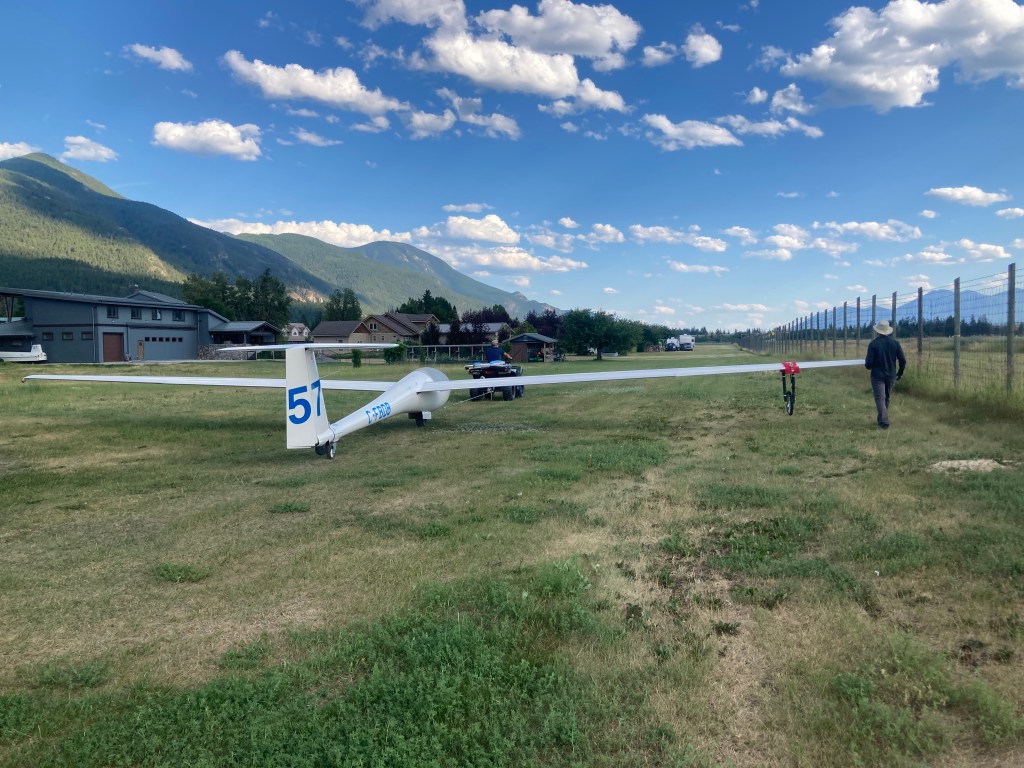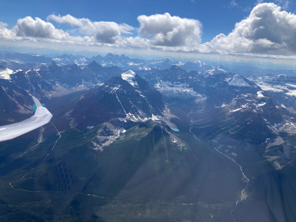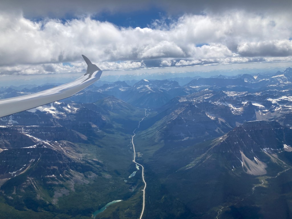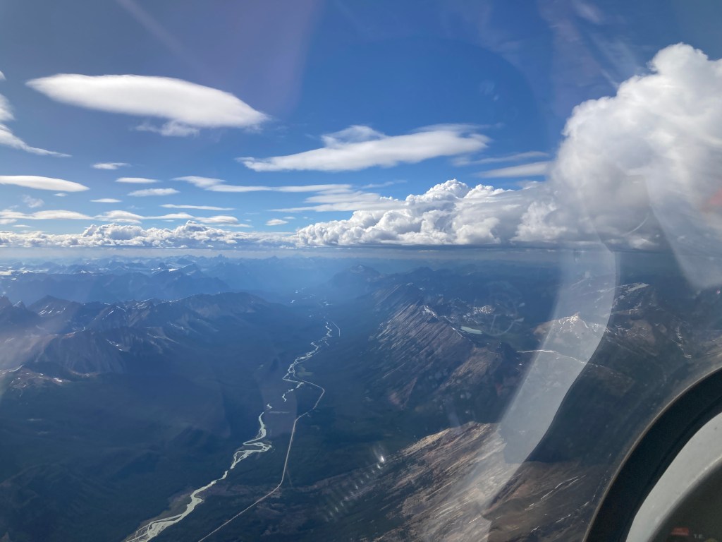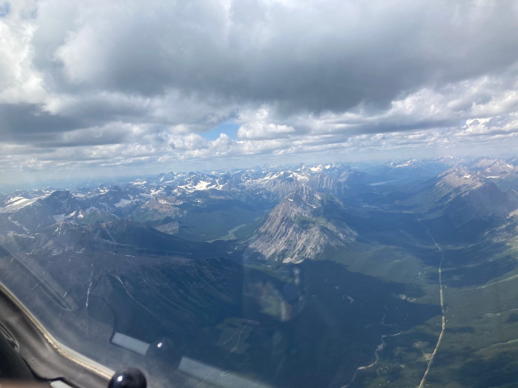 New terrain to me. Columbia icefield, and the icefields parkway headed over Sunwapta Pass.Better light looking south at Mount Athabasca. A climber died on this mountain the day that Marta and I climbed it.Mount AlbertaClouds are billowing higher to the north. Hinton has an excellent airstrip, but it’s raining in the foothillsJasper Airstrip. 9 days later, a wildfire roared through and wiped out a big chunk of the town of Jasper.Mount Robson. Very imposing mountain. After spending most of the day exploring Jasper, I decide to head for Ram Falls or Red Deer Forestry airstrip.Red Deer Forestry is a beautiful volunteer maintained airstrip downstream from Yaha Tinda. I have it to myself tonightThe next day, I head over to the Invermere valley, and spend most of the day running the ridge. Very comfortable and straight foward flying, almost as easy as wave. My mountain flying speeds are usually quite low, because I stop at every thermal to climb as high as possible, to reduce risk. On the invermere ridge, pilots can reject the weak thermals, since there is no consequence to losing 2000′.Tied down at Fairmont Hot Springs, in front of the house of a Swiss pilot called Heinz (sp?). The next day is poor, so I stay on the ground and go hiking.The next day, the clouds are immediately overdeveloping, so I head back to CuNim. A huge fire north of Fernie is making lots of smoke, too. The fires explode over the next week, this trip was timed perfectly.
