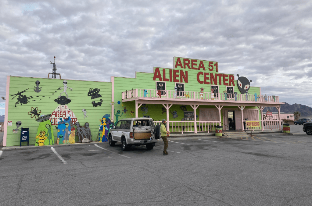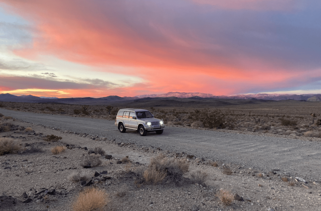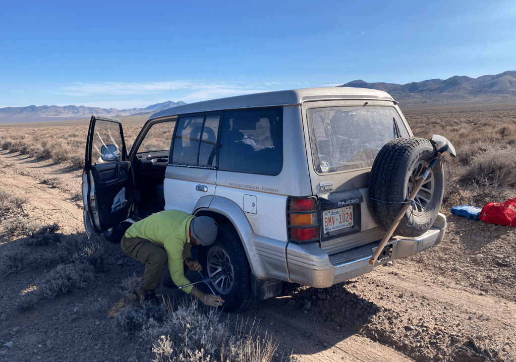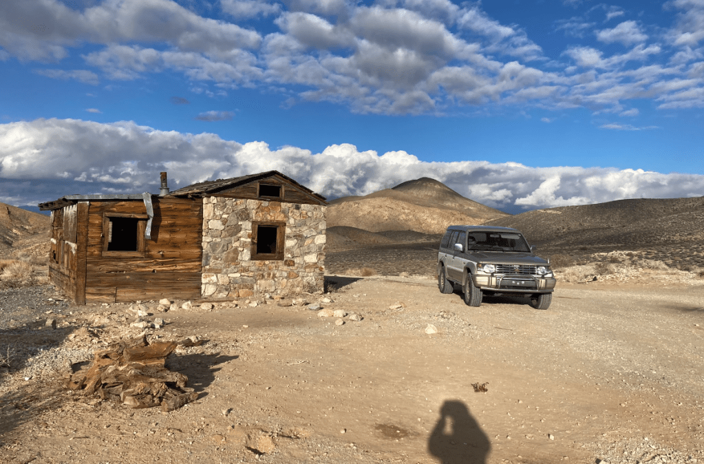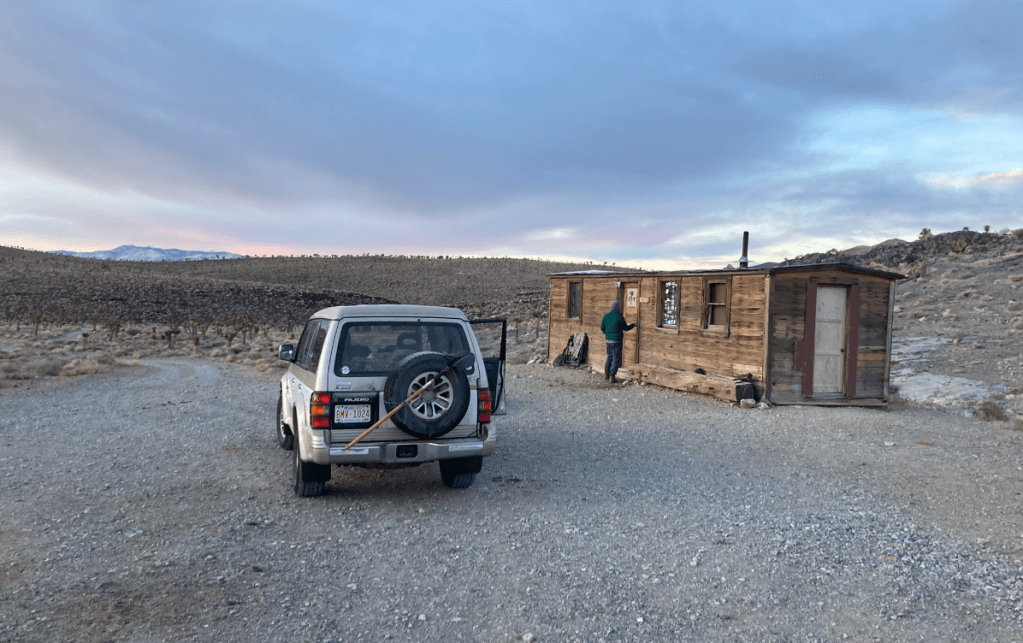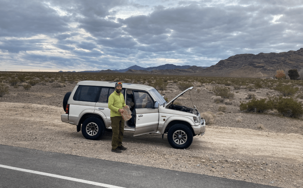 Measure once, cut thriceI’m a drawing-on-a-napkin builder. Inevitably, I lose the napkin after making a few cuts.Storage goes under these flaps, which will have hinges shortly. Put a mattress on top.Acceptance test passed. Time to load and goOn the way to Murica, we stop at the CuNim christmas party, and I get an award for being willing to sit in a glider and push the stick forward all day. Well, there is a little more to it than that…After a very comfortable night sleeping in the Pajero, -13C at the Claresholm airport, we put the pedal to the metal and head south. Pajero Diesels are slow – 98 horsepower!Keep driving south until the weather improves. About 2200kmAll the way to Zion before the snow fadesThe first of many stops where I ponder – is coolant supposed to be brown? Is changing oil every 5 years really necessary?Gas station in Indian Springs. Watching the drones practice at the AFB across the roadThis gas station knows their customersWith an Alien Brothel behind. Seriously. Turnoff at Armagosa ValleyThe first gravel road. 🙂 Now we can playQuite close to area 51.So many old mines in Nevada. Some still operational, but that’s less interestingWe missed the desertOld flourite mine below with a new gold mine behind.Our species has dug some big holes. I’d never even heard of FlouriteA hard place to live, but they did have a 800 feet deep hole to climb down into every day, so there was a bright sideFauna of Beatty, NVNevada is great. Just go anywhere you wantThese guys are little more suspicious than their town brethrenWe explore mine shafts a little – super interesting but very deadlyWe hear a weird noise and discover a wheel is trying to fall off. Hmm. Note the hastily added spadeOld rail lane. At one point there were three rail lines coming into the Beatty area. Lots of gold. Like bitcoin, but where the proof of work is dynamite and cyanide.That’s no fun. No wonder Sarlacc are endangered.Some art if you’re into that kind of thing