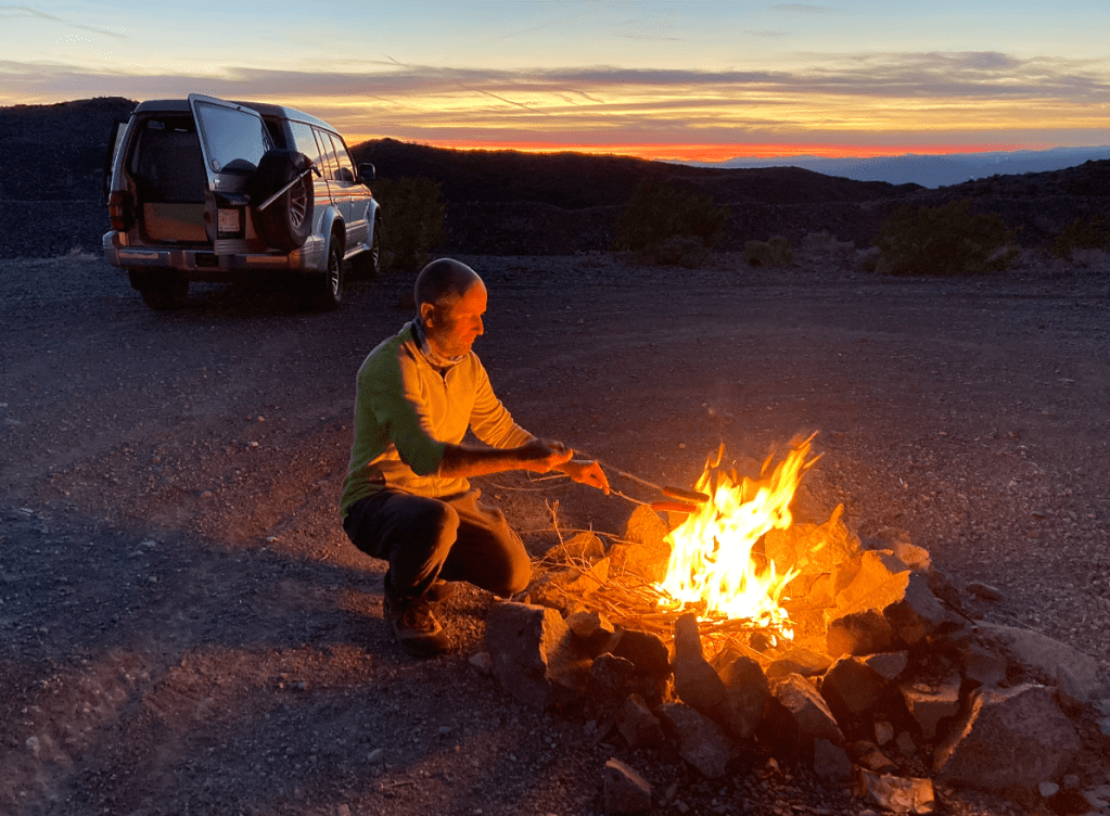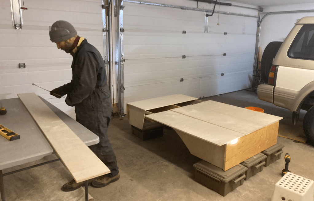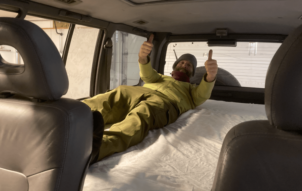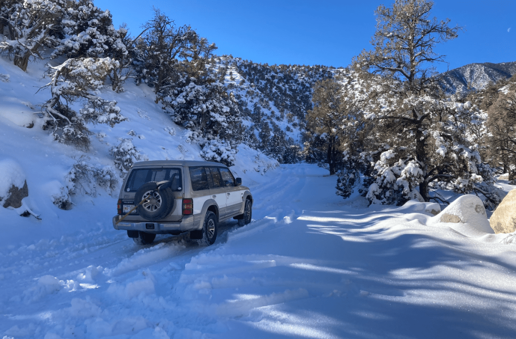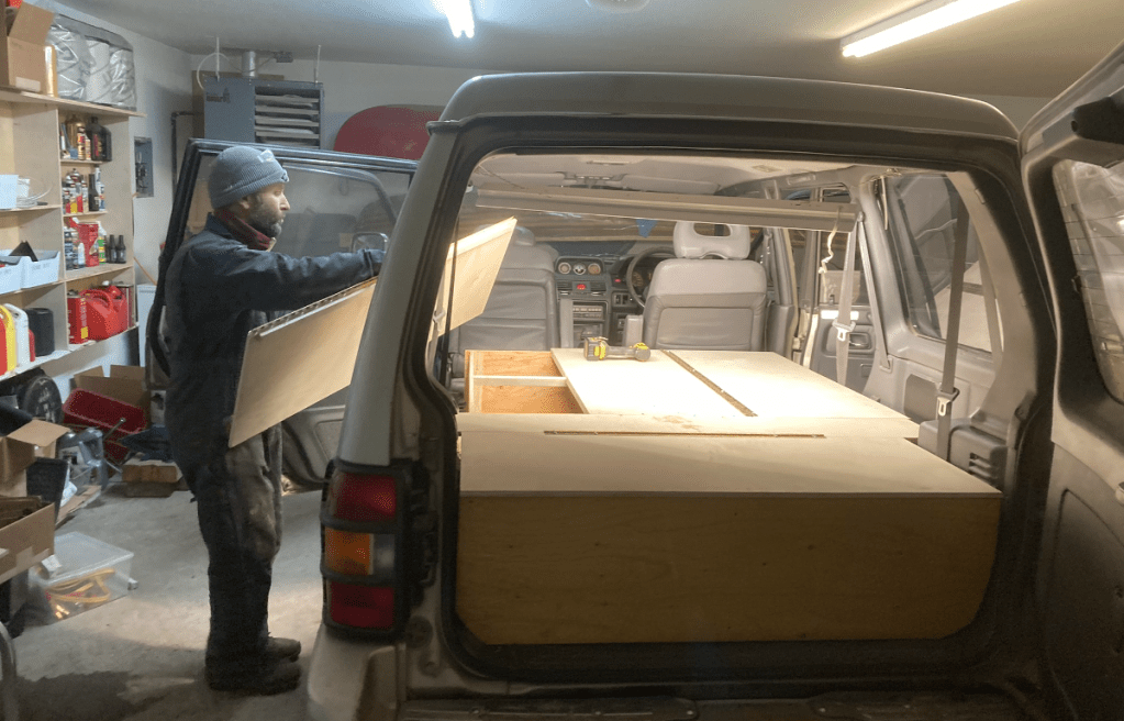 Measure once, cut thriceI’m a drawing-on-a-napkin builder. Inevitably, I lose the napkin after making a few cuts.Storage goes under these flaps, which will have hinges shortly. Put a mattress on top.Acceptance test passed. Time to load and goOn the way to Murica, we stop at the CuNim christmas party, and I get an award for being willing to sit in a glider and push the stick forward all day. Well, there is a little more to it than that…After a very comfortable night sleeping in the Pajero, -13C at the Claresholm airport, we put the pedal to the metal and head south. Pajero Diesels are slow – 98 horsepower!Keep driving south until the weather improves. About 2200kmAll the way to Zion before the snow fadesThe first of many stops where I ponder – is coolant supposed to be brown? Is changing oil every 5 years really necessary?Gas station in Indian Springs. Watching the drones practice at the AFB across the roadThis gas station knows their customersWith an Alien Brothel behind. Seriously. Turnoff at Armagosa ValleyThe first gravel road. 🙂 Now we can playQuite close to area 51.So many old mines in Nevada. Some still operational, but that’s less interestingWe missed the desertOld flourite mine below with a new gold mine behind.Our species has dug some big holes. I’d never even heard of FlouriteA hard place to live, but they did have a 800 feet deep hole to climb down into every day, so there was a bright sideFauna of Beatty, NVNevada is great. Just go anywhere you wantThese guys are little more suspicious than their town brethrenWe explore mine shafts a little – super interesting but very deadlyWe hear a weird noise and discover a wheel is trying to fall off. Hmm. Note the hastily added spadeOld rail lane. At one point there were three rail lines coming into the Beatty area. Lots of gold. Like bitcoin, but where the proof of work is dynamite and cyanide.That’s no fun. No wonder Sarlacc are endangered.Some art if you’re into that kind of thing