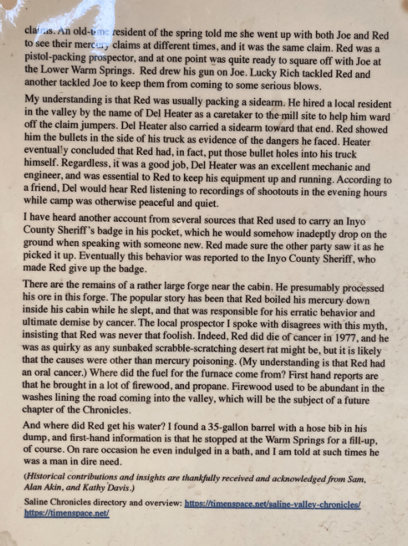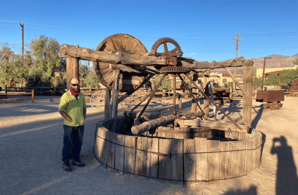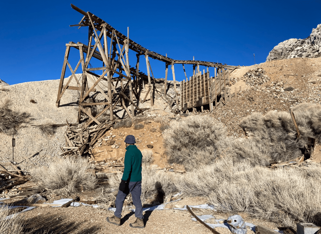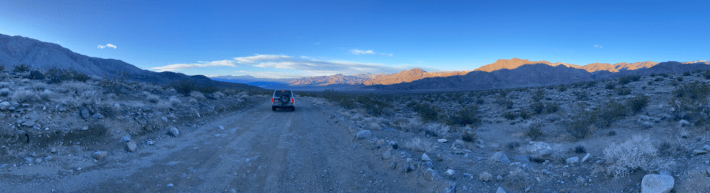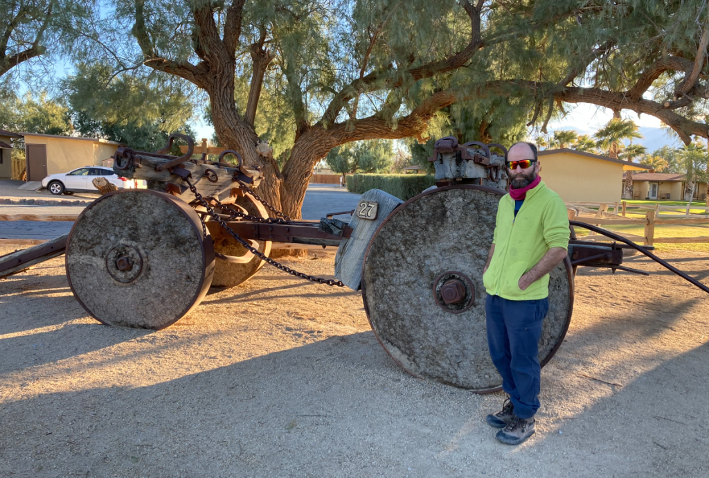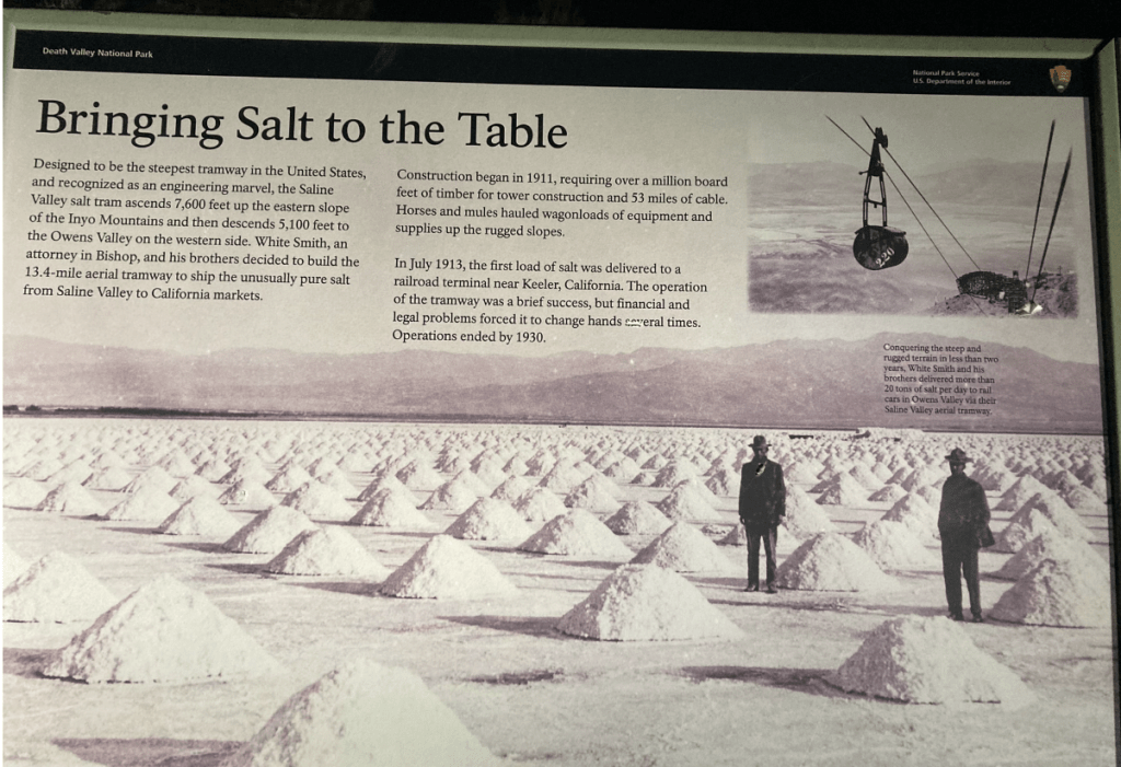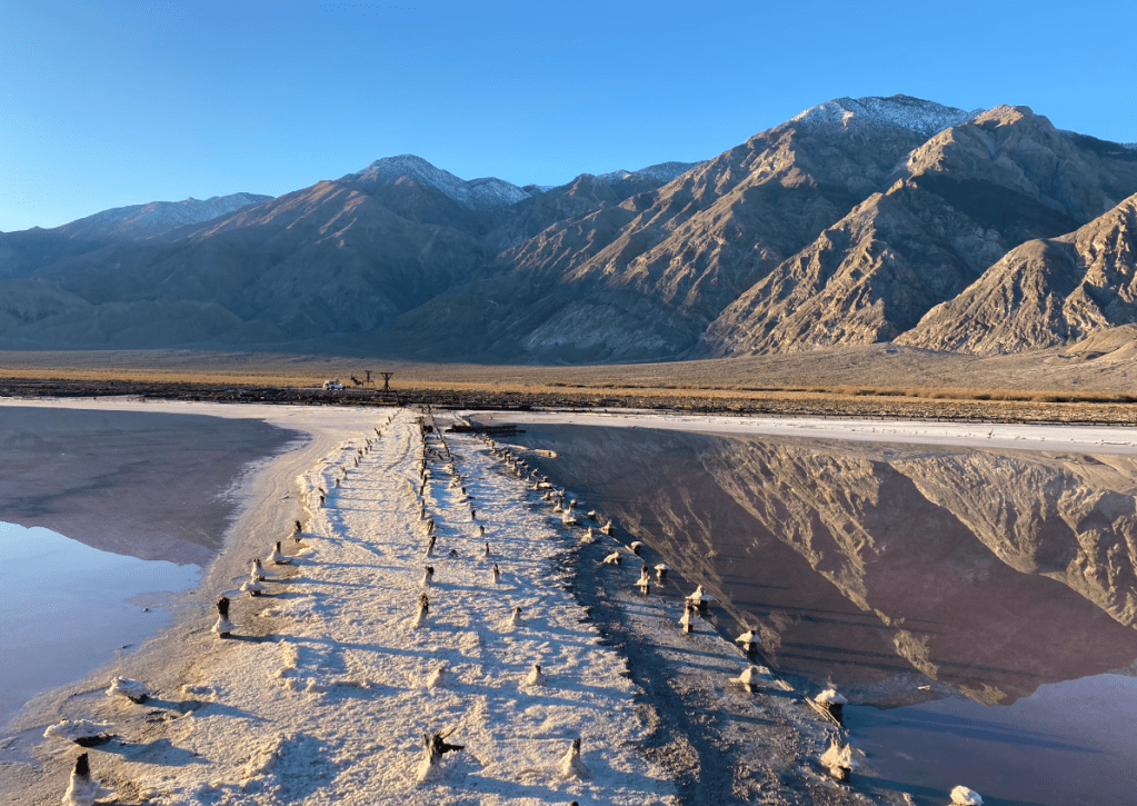 Machines, if you’re into that sort of thing. I am! Form follows functionDeath Valley is still smashed up by huge floods, so we head west to Saline ValleyThe washboard is just brutal. Just slow down and relaxLots of interesting places to stop. Box Car CabinJoshua Trees. Waiting for the giant sloth to returnHunter Mountain. Cool how a recent snowstorm deposited ice on these branchesDropping into Saline valley, the bottom of which is just above sea level. This is a big terminal lake with high passes at both ends. Shortly after this photo, we had a jet fighter sneak up on us at low level. Absolutely terrifying and awesomeOld timey Tramway in the Saline Valley over the Inyo mountains.Yeah, let’s build a tram over these mountains 2 miles above us. People were nuts a hundred years agoDistances are huge, especially at 15km/h on smashed up roads.Any fresh water gets your attentionSand Dunes!