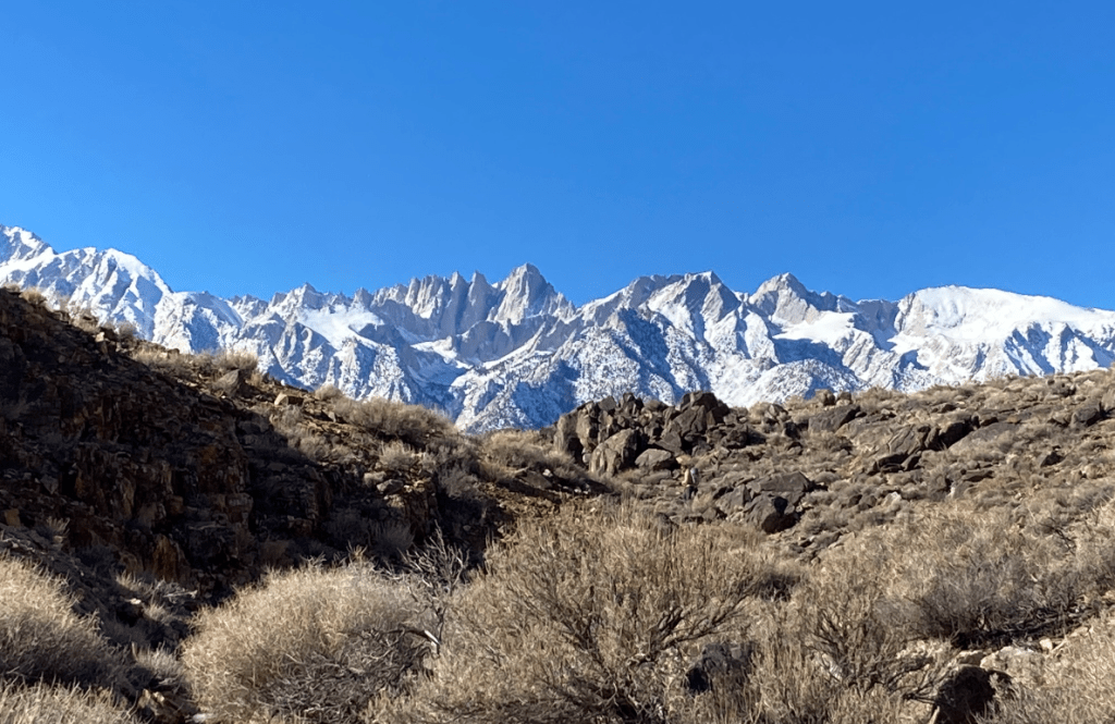 12 hours of patient puttering along severe washboard is a little trying. The Burros help to entertain us.We escape Saline Valley in the dark, and wake up the next morning to the stunning views of Mount Whitney, the Sierra Nevada, and the Alabama Hills.Mount Whitney, I thinkI realize we are just below Cerro Gordo, a famous Ghost Town. I’ve been lurking on a youtube channel that is trying to keep this road open, literally the definition of a sisyphean task.They have a deuce-and-a-half. My plow truck, Greta is a bigger tow truck from this vintage