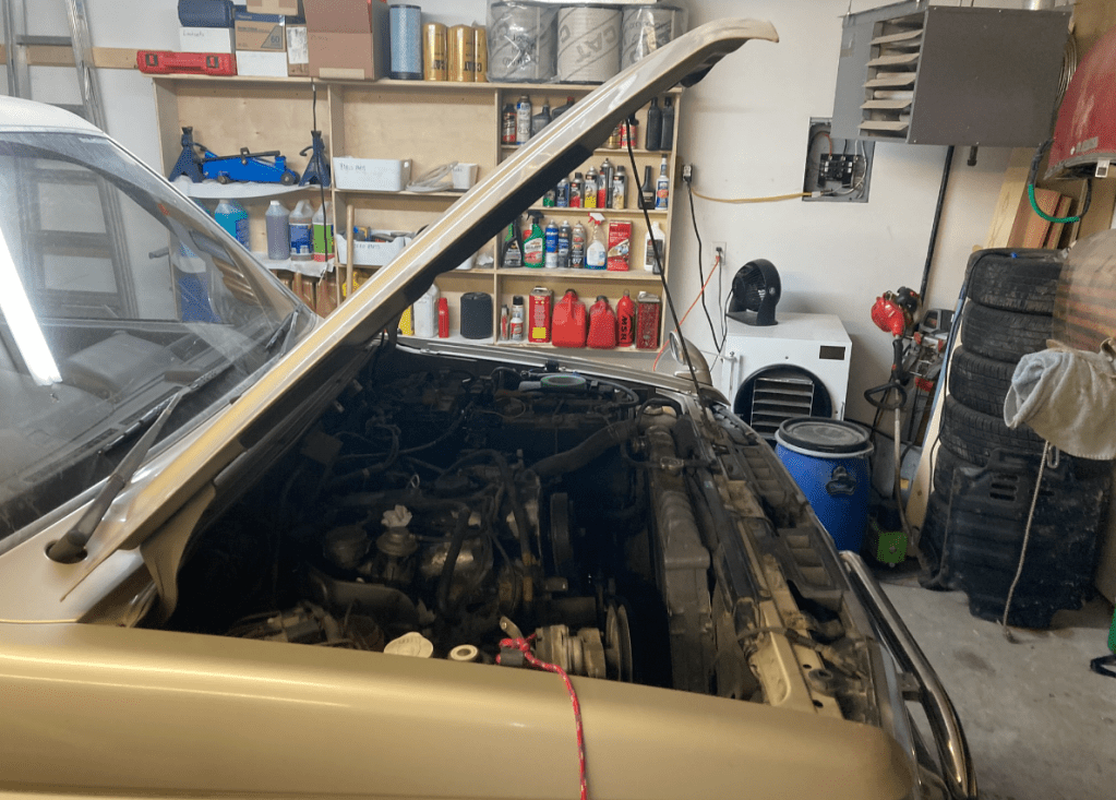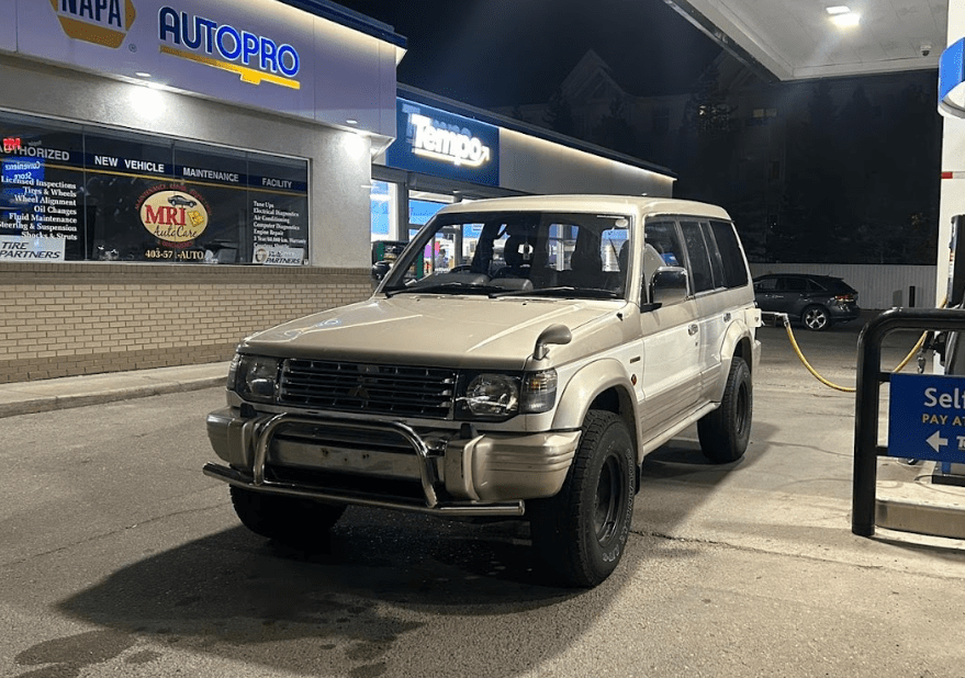 Arriving back in Calgary, I get busy doing long overdue maintenance on the Pajero. As soon as I open the radiator cap, coolant starts to drain on the floor. Water pump is done.