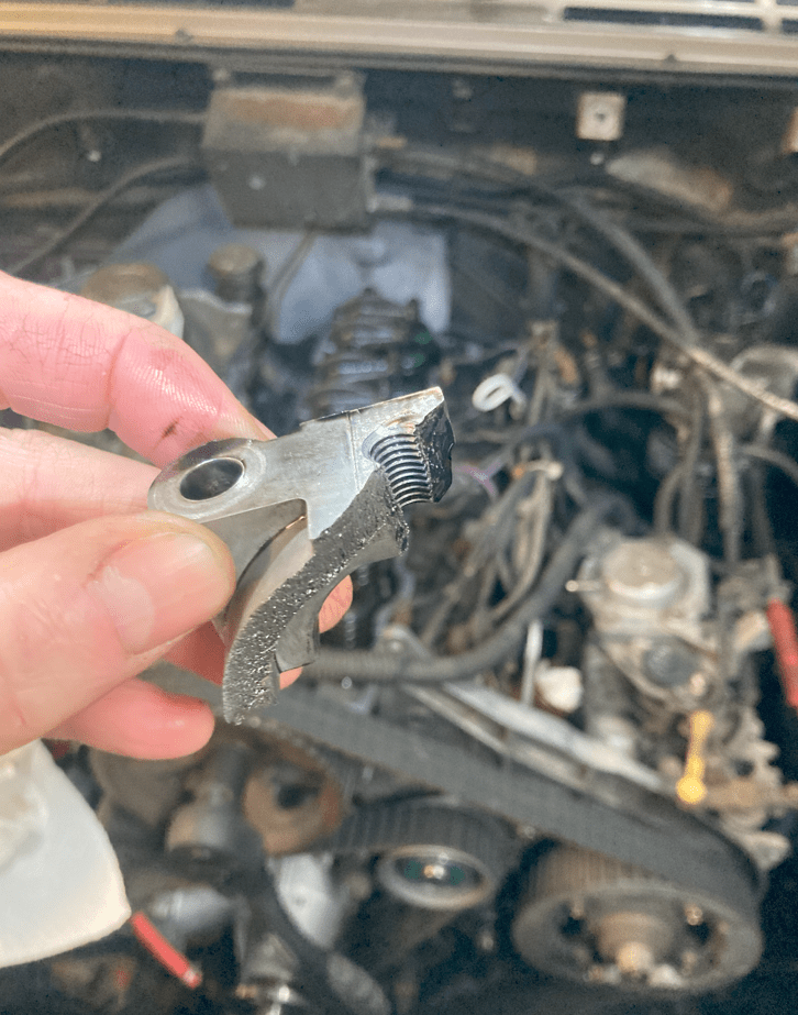 The 2.5L diesel goes back together well, except I don’t know that I’m supposed to run the engine for an hour, and then retighten the timing belt. A few months later, the timing belt slips, and the pistons hit the valves.