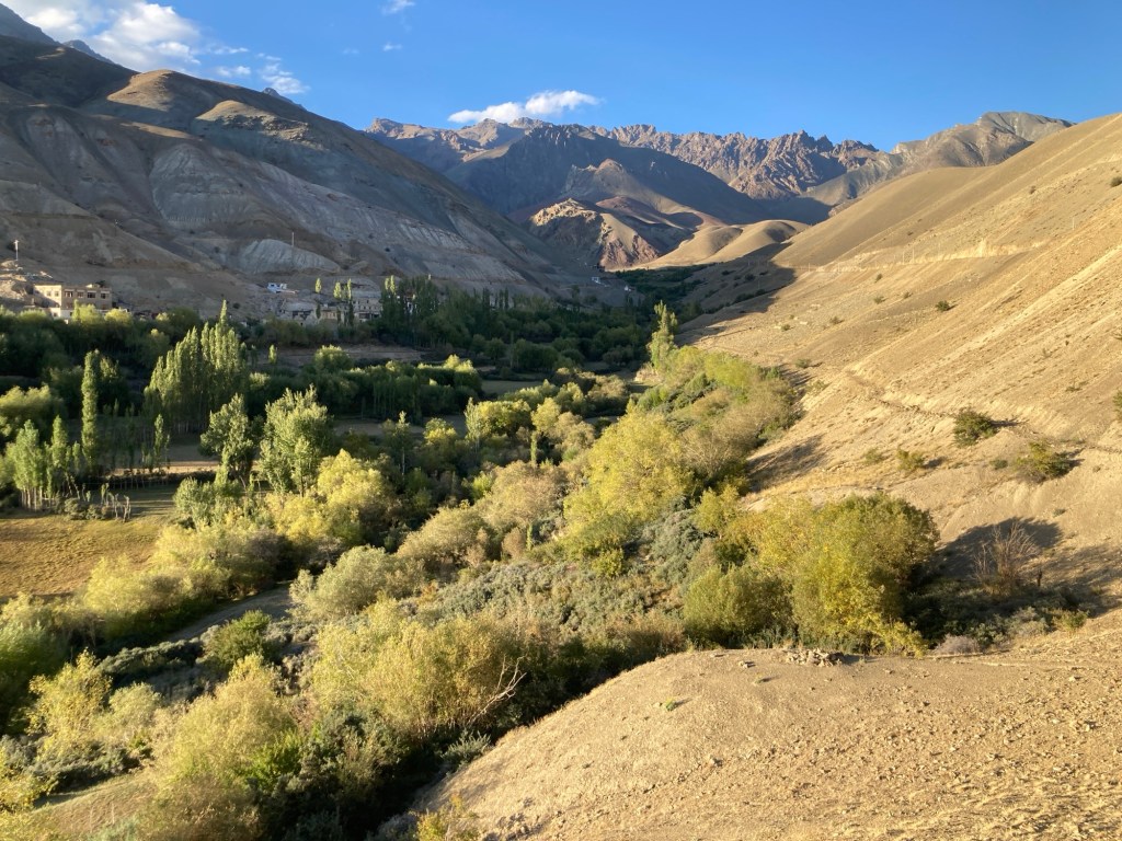 After a good sleep, we head up Numi Go mountain behind our guest house. We didn’t plan to reach the peak – starting from 3275m and going for a 4900 m peak is just too much in one day for us. To tackle even a small mountain like Numi Go, we have to be able to camp high and sleeping at 3800 m right now would be a disaster.