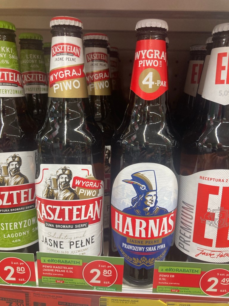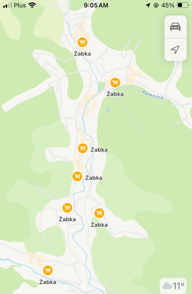No grocery stores and few restaurants in the area around Bieszczady, so the hotel room includes dinner, breakfast, and you can make a hiking lunch at breakfast.Hiking in Europe, off season. This obelisk is on the border of Ukraine, Poland, and Slovakia. The circular economy has gone too farPoles don’t need very much “wilderness” to make some trails and go for a hike. They would be confused by Canadian parks – where are the hordes of people?Poland has their own version of the Japanese 7-11s, called Zabka. A lot of them.The Spa town of Krynica-Zdroj has reached peak-ZabkaSome of the alcohol for sale at a Zabka. Maybe it’s just Canada that makes a big deal of only selling alcohol in special stores. Polish Robin Hood on the right, and the administrator who hunted him on the left.
