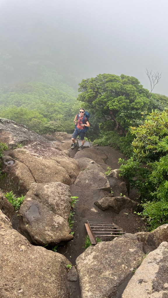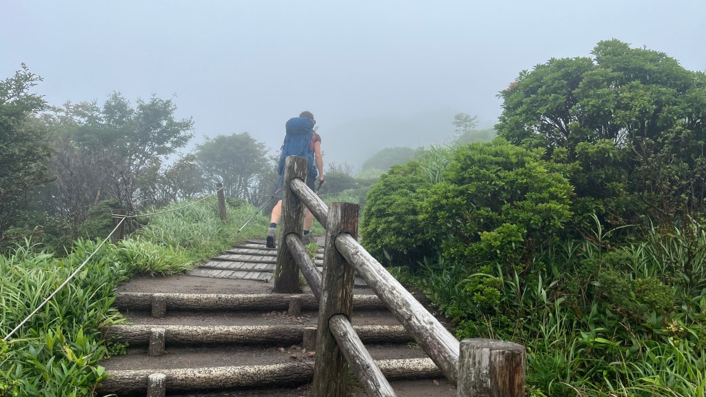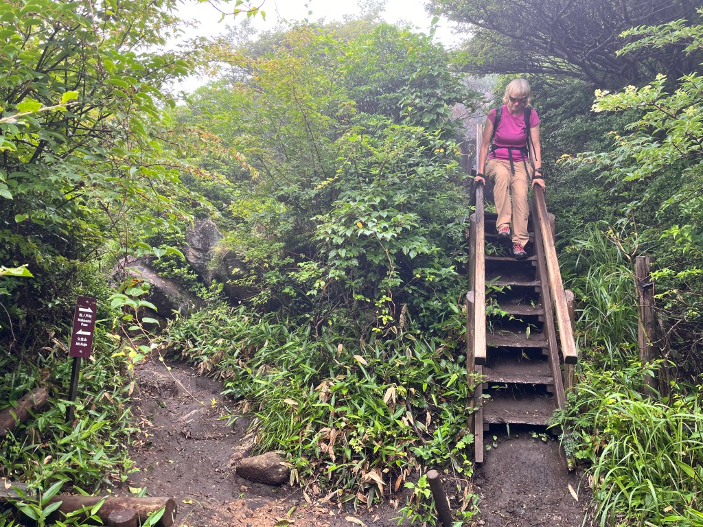 Our hike was mystical. We reached the peak in 1 hour and 50 minutes, though visibility was limited. Afterward, we had time to hike to the adjacent Mount Tengugayo and then Mount Kuju, a stratovolcano and one of the 100 Famous Japanese Mountains.