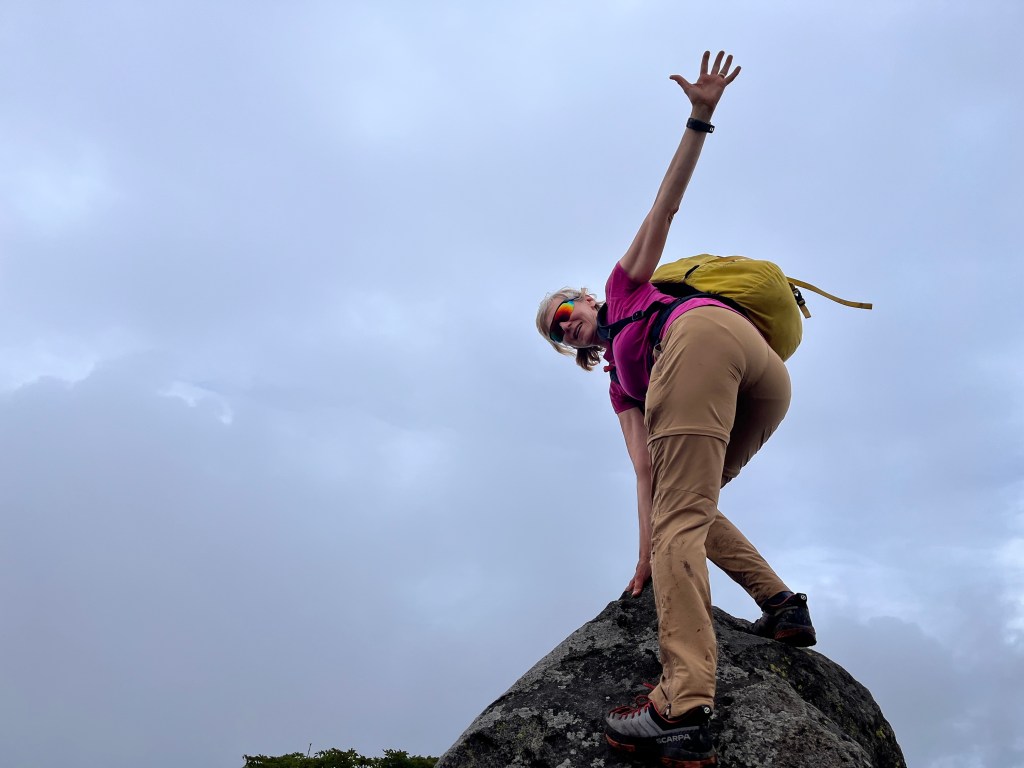The afternoon forecast no longer predicted thunderstorms! We had 5.5 hours to be back at the bus stop. With the temperature perfect, we rushed forward. The trail was well-made and well-marked, though wet and muddy in some areas. Along the way, we encountered six people descending with large backpacks, clearly multi-day backpackers.