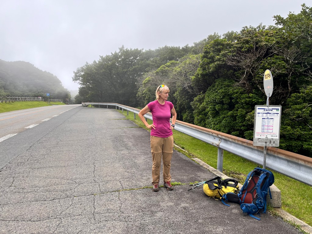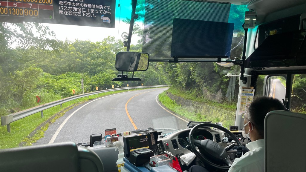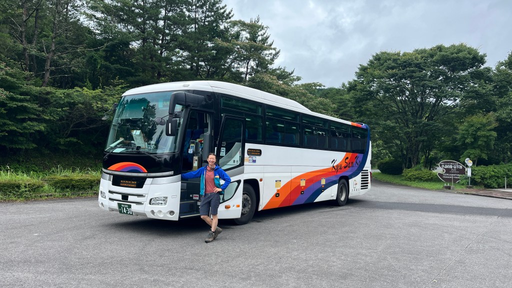 With no other options, Zosia and I had no choice but to take the 9:00 AM public bus, hoping we could get on without a reservation. Another gamble that worked! The bus arrived on time and was almost empty, with only four people on board. The one-way fare was 1,700 yen ($17 CAD), and the road to the trailhead was scenic.