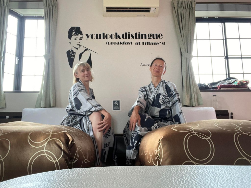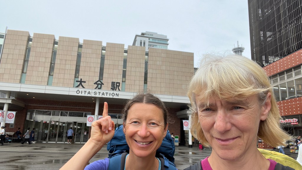 Instead of traveling from Fukuoka to Yufuin through the mountains, Zosia Zgolak and I decided to take a train along the coast, hoping that by the time we reached the Oita station, the weather would improve. From there, we planned to take a local train to Yufuin. This gamble paid off. By the time we arrived in Yufuin later that afternoon, the sky had cleared.
