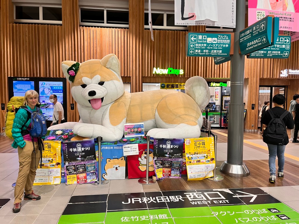 After a 12-hour journey by train from Kyushu Island to Akita, we stayed in a house apartment rather than a hotel. Our host turned out to be a passionate cyclist. When we asked where to rent bikes in Akita, he generously offered us his own. His wife kindly gave us a couple of bottles of water and some cookies. We only had the morning free, as we were catching a Joyful Train in the afternoon. It was fun to have this urban bike ride in Akita. We almost missed the Joyful Train because we both remembered the wrong departure time. Luckily, we can run!