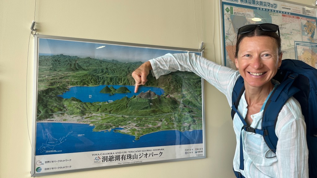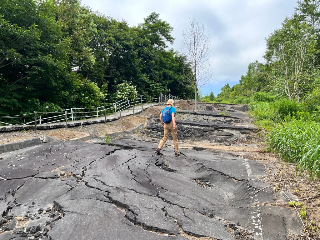 We also hiked a small section of the rim that is open to the public. Although it’s relatively easy to scramble to the top of Mount Usu, it is not allowed without a guide. Instead, we admired a “baby” volcano, Mount Showa-Shinzan, located just east of Mount Usu. It emerged from the fields as recently as 1943.