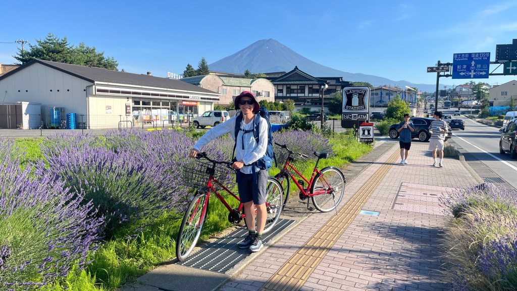 Catching a glimpse of Mt. Fuji while cycling near the serene shores of Lake Kawaguchi. - Saijo, Shikoku Island – July 11
