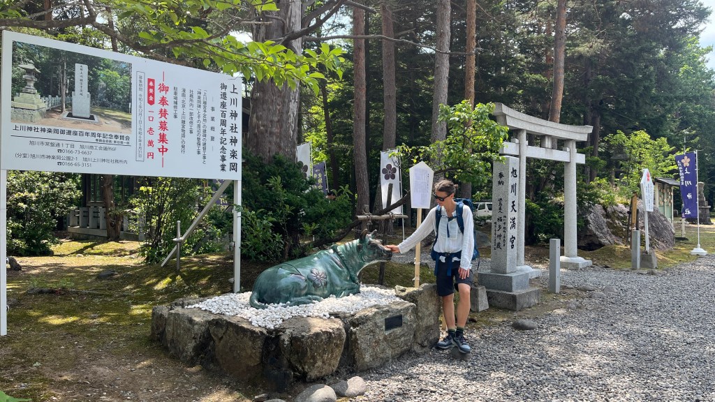 Zosia and I stopped in Asahikawa on our way to Daisetsuzan National Park with the highest peak on Hakkaido Island. We arrived here around noon. Our hotel offered two bikes, and we enjoyed exploring the area by bike. Naturally, we were drawn to find a mountain first😊 .