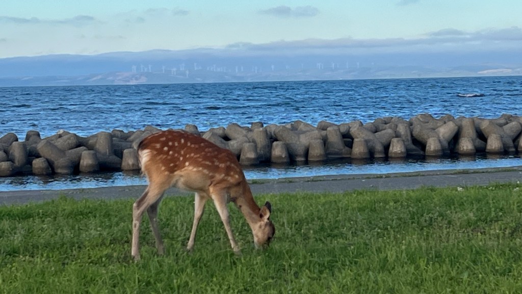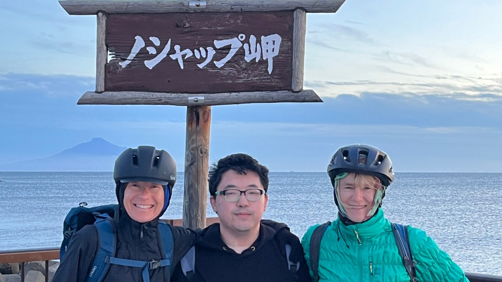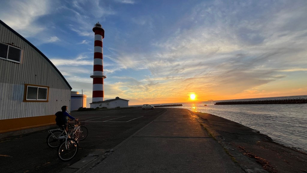 Zosia booked a hostel close to the JR train station and also arranged bikes for us for two days. Once we arrived, it was late in the day, and we had only a few hours before sunset. We cycled to Cape Noshappu to catch it. It was a real treat.