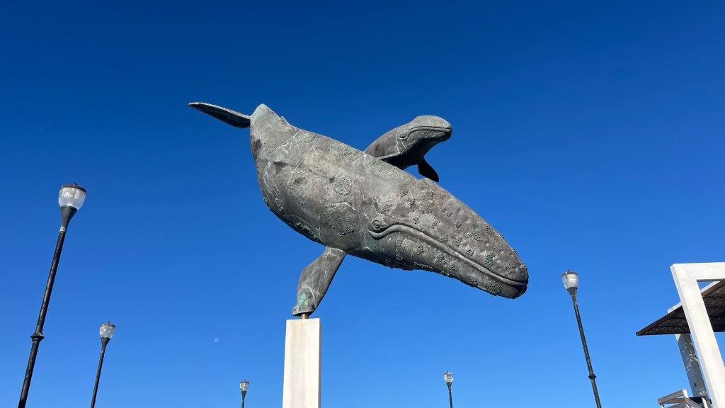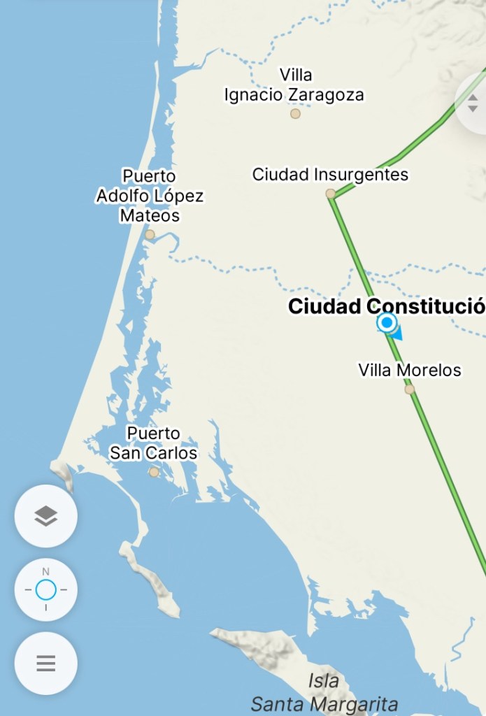 The sheltered lagoons have excellent fishingThe right light will make even a seaweed choked tidal flat picturesque Gray whales migrate down from Alaska to give birth in the sheltered bays. Mothers will introduce their calves to boatloads of tourists. Sounds pretty special, but we are a month early. December is known for morning fogThere are a handful of large cities in the Baja, with big supermarkets. We take advantage of our storage capacity and refrigeration to really stock up. This chain is actually Walmart. Fruit and veggies are similar in price to Canada, giving some clue to the logistical challenges to keeping the Baja supplied. Baja is 1400km long, with one road in most places. Resupply has to come from the top, or on a ferry across from the mainland. Either way, each truckload will take 4+ days, with little opportunity for back haul.