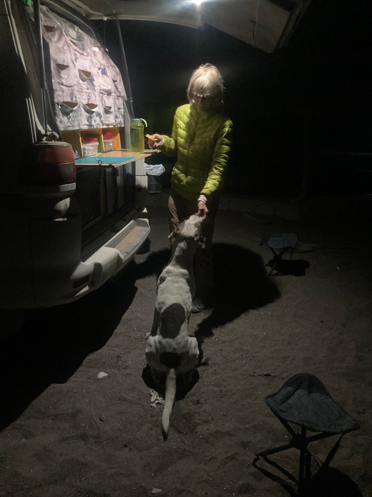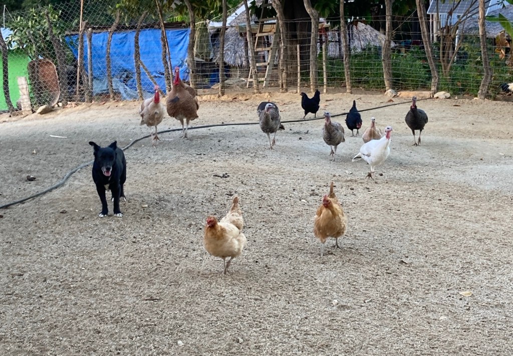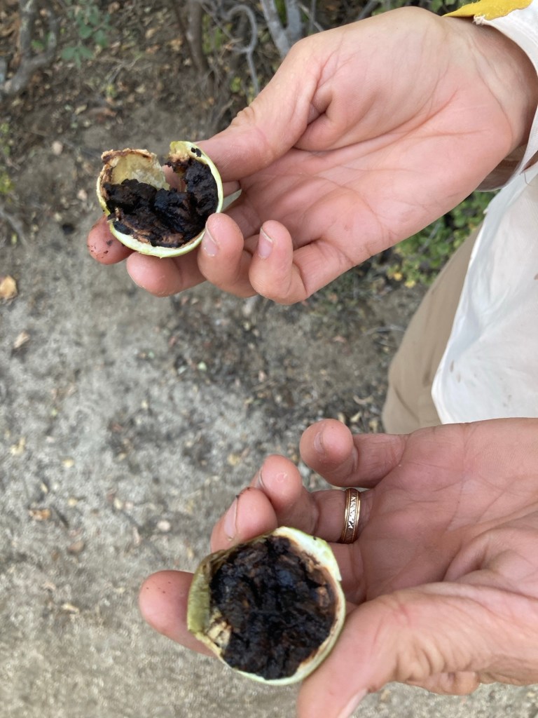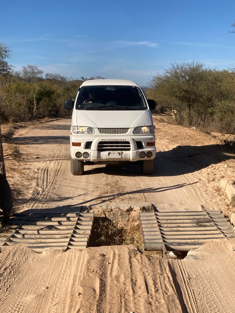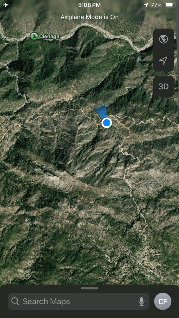 Watching pigs eat shoulder blades makes me think mobsters who keep pigs know what they are doing. Unsurprisingly, pigs like TostadosRanchers have 12v freezers since rural Mexico runs on solar. I’m surprised there isn’t more grid connected solar in the Baja. Most power comes from huge diesel generators – not cheap.Everyone comes running for TostadasThese big trees are just spectacular. This one is at least 15 meters above the creek, so a huge root system. I LOVE satellite imagery. The road shown here didn’t exist on any mapAs soon as we hit the Pacific, there are whales everywhere you look. Baja is the nursery for several species. We are planning to hike Sierra de La Laguna, the highest peak in Southern Baja, and at the center of a huge park. Some attempt has been made to make a few trails, but the real point of the park is to protect the watershed. Unbelievably the park headquarters is open and staffed.