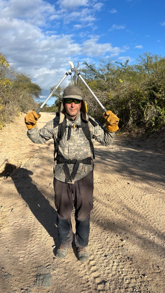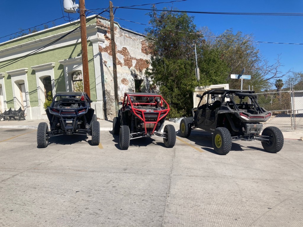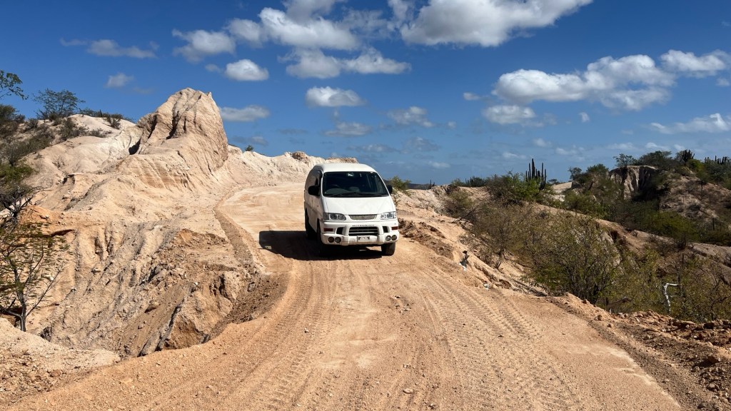 Food is interesting in each country. Nutella is cheaper than peanut butter. Peanut butter includes added corn syrup and vegetable oil. Even apple juice is diluted with corn syrup and artificial sweeteners. We aren’t losing weight. Many Mexicans get breakfast/lunch at little stands like this. Coolers full of empanadas/tamales/burritos cooked that morning. I’m amazed to see gasoline scooters still being made and sold around the world. Little run-abouts like this are the easiest win for electrification and the Chinese cut their teeth on EVs building half a billion of these > 10 years ago. But… Mexico makes these locally, and with even Europe failing at building their own batteries, electrification would be a big loss for domestic manufacturing.Lots of awesome beaches in the southern Baja. There are thousands of whales and they jump for hours. As we go south, the brush gets worse. Cactuses have been largely replaced by dense brush. We hike a hill 700 meters from the car and are at serious risk of having to spend the night out.We are in an arms race with the vegetation. A seamstress added denim patches to the front of my pants. The next step would be a full face mask to get better eye protection but I’m questioning if I really like chopping my way through a dry jungle. Still, the roads are amazing. Renting side by sides is a big business in Baja. I’m always surprised how few people are disturbed by loud engines – my gut feel is that these machines shouldn’t make any more noise than a toyota corolla, but man, they are loud. To the point that they use headsets/ear protection with a built in intercom for everyone. Which sounds quite a bit more expensive than a muffler. After four weeks without a shower (just washing with a cloth), we stay at the San Dionisio Ranch in the Sierra de la Laguna mountains. Next year, we plan to head to mainland Mexico, and staying in campgrounds is often necessary for safety.For contrast, this was our campsite the night before. As long as the ranchers can squeeze by. The campground has tame, massive chickens roaming around.
