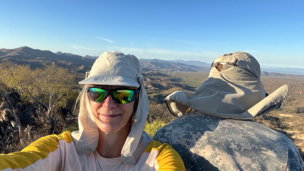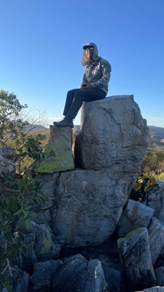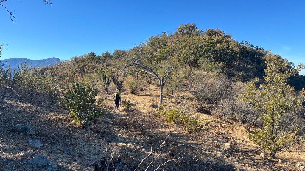In the afternoon we head into to the mountains, Sierra La Laguna range. With little day left we pick a tiny peak to get a workout for the day and test Chesterβs new βsmart vaquero outfitβ (thank you Bob Parr π).