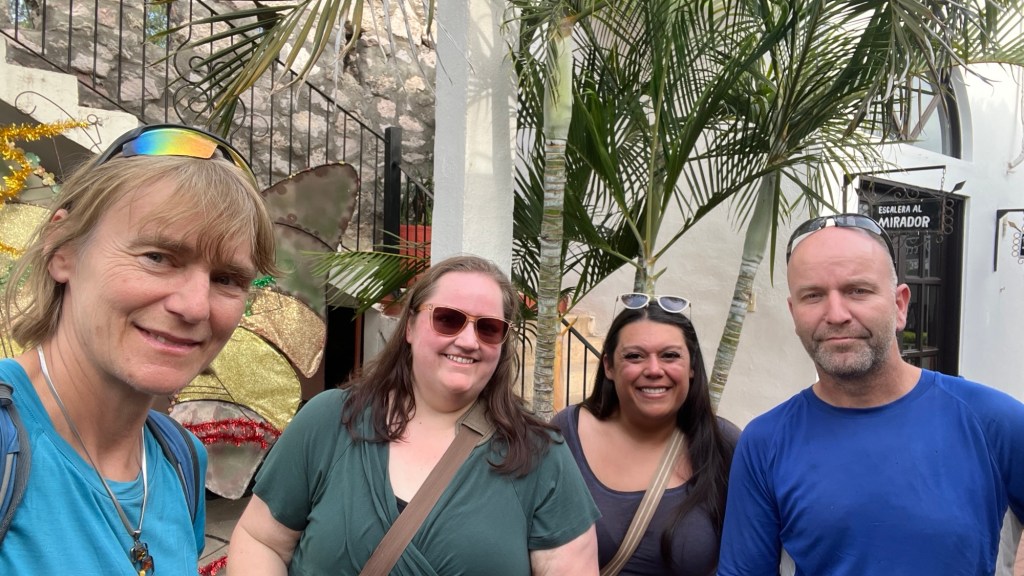 This is not our van – The first L400 Delica we’ve seen in Mexico. They complained about overheating so we sold them our spare thermostat. Small worldOur friends from Calgary, the Olorenshaws. I met Brad (center) at Mt Assiniboine in 2003, I met Lisa through Brad, and Marta through Lisa. And he married us in 2011.