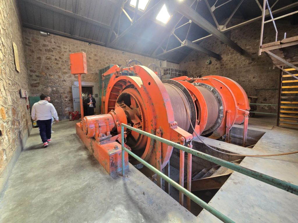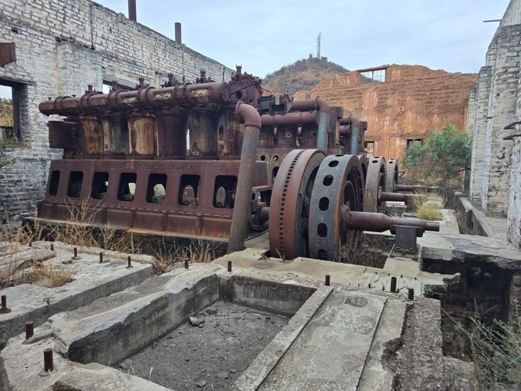 Our legit mine tour of the La Prieta mine in Parral was a letdown after the adrenaline of our working mine tours. Still, compare this giant winch to the modified truck we seen working a few days before. The river through Parral. There is a dam upstream, but I’m amazed the city is confident enough to pave and use the river for parking.Chihuahua city was frustrating – lots of art galleries, no proper museums. ChatGPT suggested this locomotive repair shop – and of course, it’s a gallery.We stopped in the city of Delicias – the city layout looks very striking. Until you are driving, and your GPS says “take the 7th exit from the roundabout”Marta now has a dual screen setup for video editing, using our projector. One less excuse for being bad at video. We stopped for some stranded Americans. A severe exhaust leak started melting coolant hoses. Managed to bypass the cabin heater and somewhat plug the exhaust leak with beer cans and tie wire. I wonder how long that repair held up for. And how the drive to Kansas was with no heat…