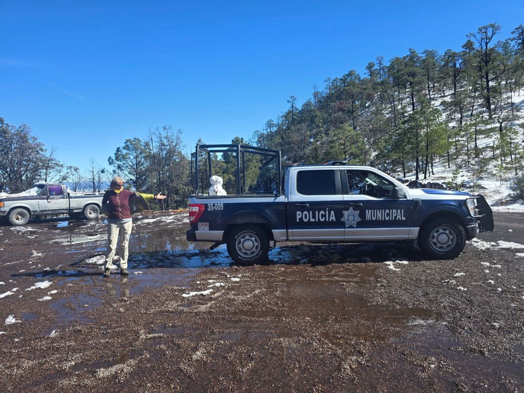 And some old footage from the canyons, using our camera drone. The canyon roads of the Sierra Madre Occidental are our favorite bit of Mexico so far. Marta will write about us getting hammered for 36 hours by freezing rain – I’ll just drop in this photo of some police who built a snowman in the bed of their truck The higher we are in the canyons of Durango and Chihuahua, the happier the trees are. This tree was only 50 years old.We stop at a sawmill. This particular mill seems to specialize in smaller pieces of wood. Including specialized sizes for broom handles and fruit baskets.Sharpening bandsaw blades.