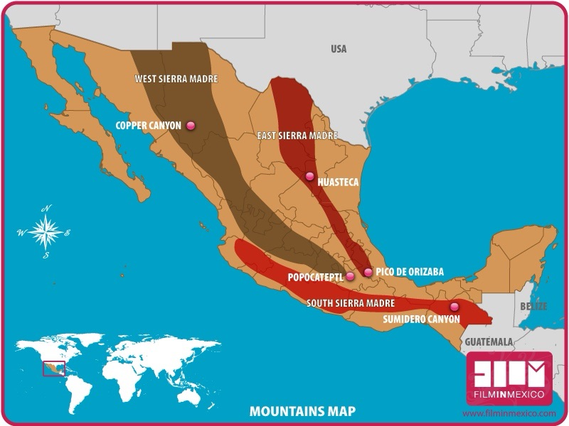Three major mountain ranges dominate Mexico: the Sierra Madre Occidental (west), the Sierra Madre Oriental (east), and the Sierra Madre del Sur (south). “Sierra Madre” means “Mother Mountain Range”.