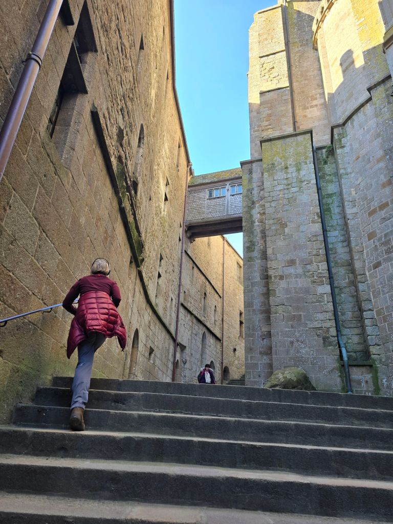 There is no way we are driving by Dunkirk, Dieppe, and Normandy without seeing the WWII detritus. Lots of concrete gun emplacements all along the north coast of France.On the Normandy beaches, we toured this lovely bunker. Tragically, it’s not an AirBNB.For all Germany’s victories early in the war – which were due to fast, aggressive movements, I suspect Hitler really just wanted to dig trenches and pour concrete. This particular bunker was supposed to hold out behind enemy lines for 60 days. Pretty unrealistic Mont St Michel is a spectacular cathedral / fortress – one of the biggest tourist spots in France. 1200 years old, and was besieged many times during the hundreds of years of war between England and France Most of the cathedral was built in the 1200sThe hunk of granite at the top of the hill wasn’t big enough for a cathedral, so various rooms with heavy columns were built to provide a solid foundation. There was some damage in this room, so they built columns around the original pillars.Would have made an excellent location for game of thrones.Medieval cathedrals would have felt like skyscrapers in their day.Lots of detail that you don’t usually see on a house for monks. The real security came from the dangerous tides and mud flats.Next stop was Marta’s French teacher from 39 years ago, Benoit and his wife, Gait. Benoit made the mistake of leaving his address with his new friends behind the iron curtain, and Poles are still showing up, 4 decades later. I continue to be destroyed by whatever disease I got on the flight over. This is a bit of justice for Europe – after all, the germ flow went the other way for several hundred years.While I’m dying of bubonic plague, Marta heads out to the far west corner of Brittany.