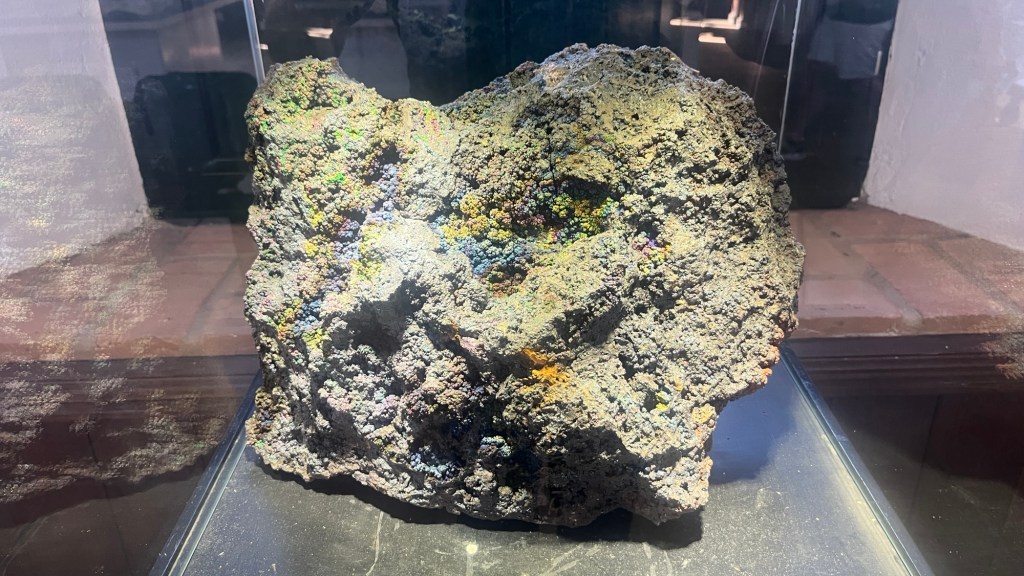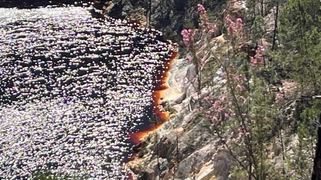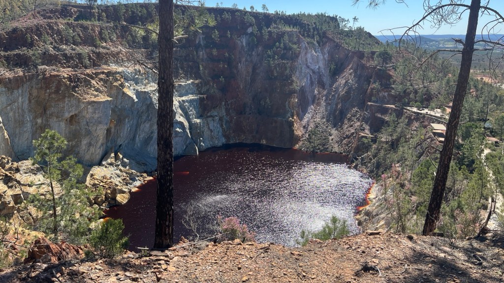 The Rio Tinto mine is where the huge mining company of the same name got started 150 years ago. Southwest Spain and Portugal have a huge mineral deposit from ancient undersea vents. Lots of iron and sulphur, much less copper, silver, gold. The iron and sulphur produce a river that is extremely acidic and runs red.
